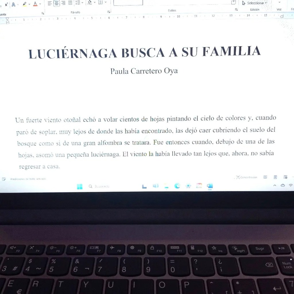 Este cuento nació hace un año y medio sin saber que sería cuento. Era una historia que fui a contar a clase de mi hija Lucía para sorprenderla y ver su carita de ilusión y la de sus compañeros. Ya está muy cerca el día en que mis hijos podrán pasar las páginas de Luciérnaga busca a su familia. Ellos y todxs lxs que queráis acompañarme en esta aventura.